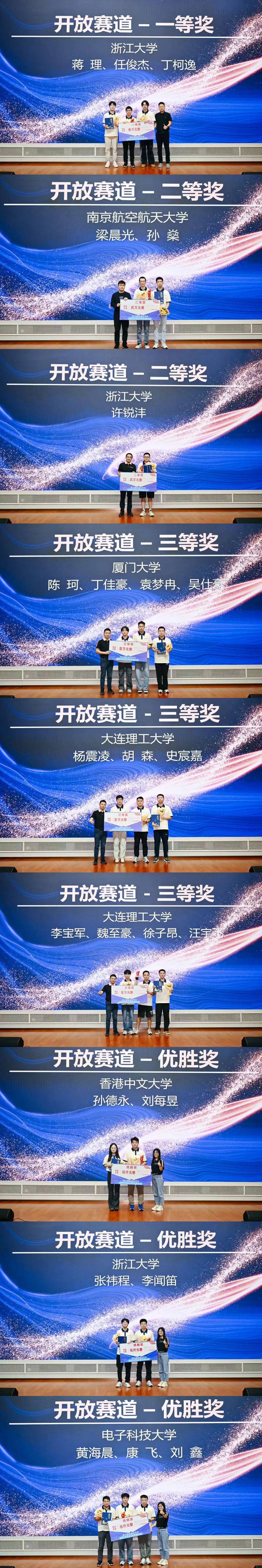 大赛共收到53支队伍的参赛作品,经过初赛严格评审,最终18支来自清华大学、新加坡国立大学、香港中文大学、浙江大学、哈尔滨工业大学、大连理工大学、电子科技大学、厦门大学、中南大学、南方科技大学、南京航空航天大学等国内外高校的优秀团队崭露头角,成功会师决赛,向最高奖项发起冲击。为激励创新,大赛设置了丰厚奖金,包括一等奖三万元、二等奖两万元、三等奖一万元以及优胜奖五千元。